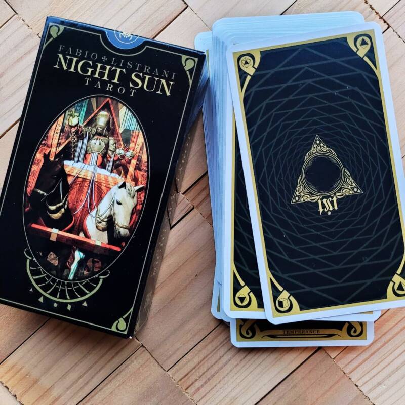 Gelukkig waren er meer mensen op zoek naar een soortgelijk deck als in de serie, en er werd de Night Sun Tarot van Fabio Listrani aangeraden. Dit is een artiest die wat meer de donkere kant van het leven, magie en spiritualiteit laat zien in zijn werk.